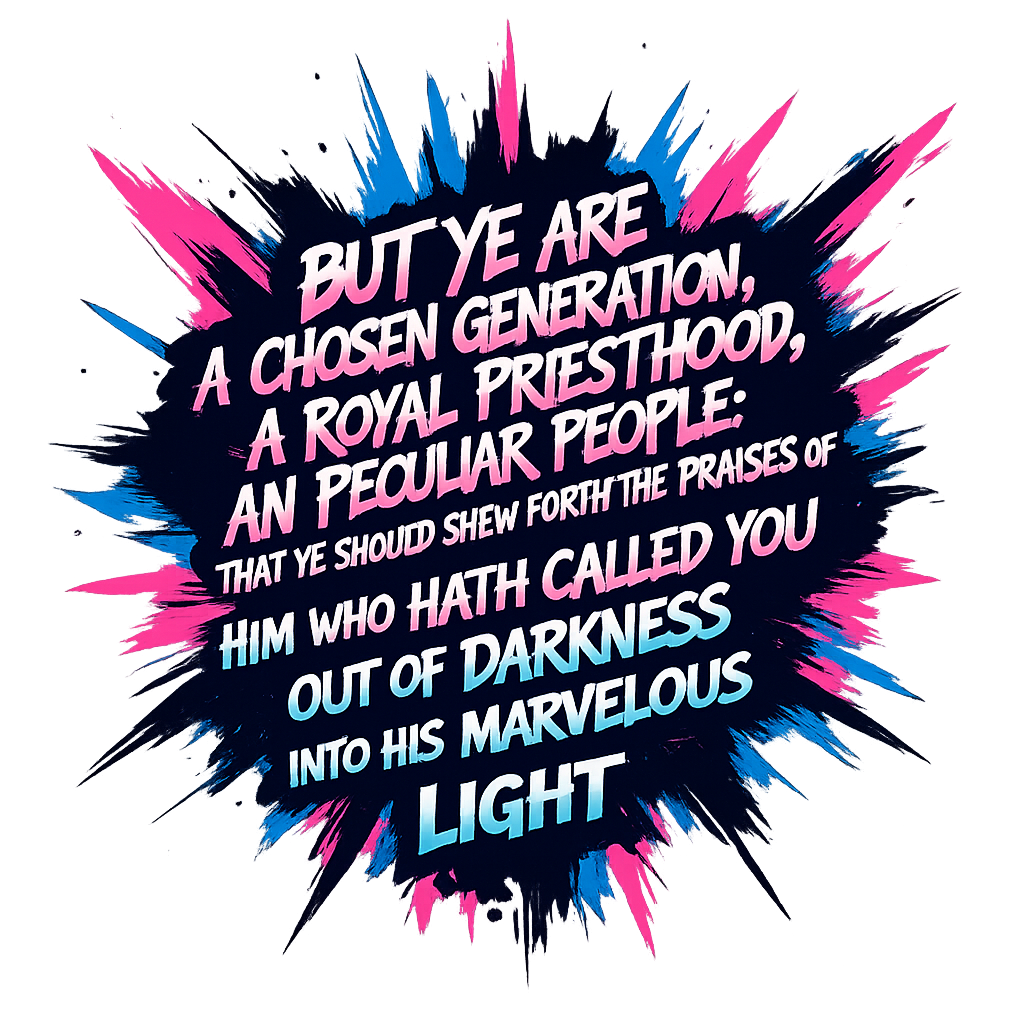 This vibrant “CHOSEN” design is more than a statement — it’s a declaration. Inspired by 1 Peter 2:9, this piece reminds you that you are a chosen generation, royal, set apart, and called into His marvelous light.